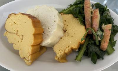 オーブントースターの天板に1の箱を置いて2の卵液を流し、オーブントースターに入れて10~15分間、よい焼き色がつくまで焼く。