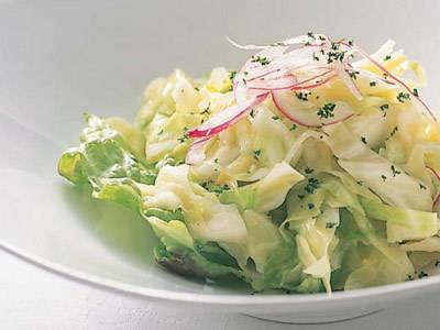 2に砂糖大さじ1/2を加えて混ぜ、さらに白ワインビネガー、オリーブ油大さじ3を加えて軽くあえる。おもしに皿を1枚のせ、1時間ほど冷蔵庫に入れ、味をなじませる。