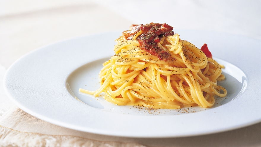 生クリームを加えずに、全卵を泡立てて軽くクリーミーな仕上がりに。ひきたての黒こしょうをぜひ。
