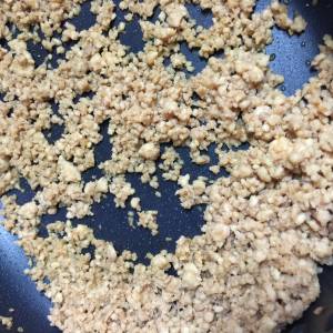 フライパンに鶏ひき肉と【A】を入れてよく混ぜ、中火にかける。