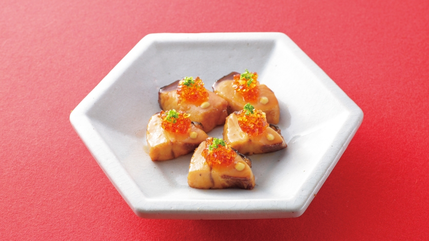 おせちの定番・ぶりの焼き物は時間がたつとどうしてもパサつきがちです。そこで、しっとり煮たぶりの「煮こごり添え」を新提案。見た目も華やぎ、煮こごりが口の中でふんわり溶けて、うまみがたっぷり広がりますよ。