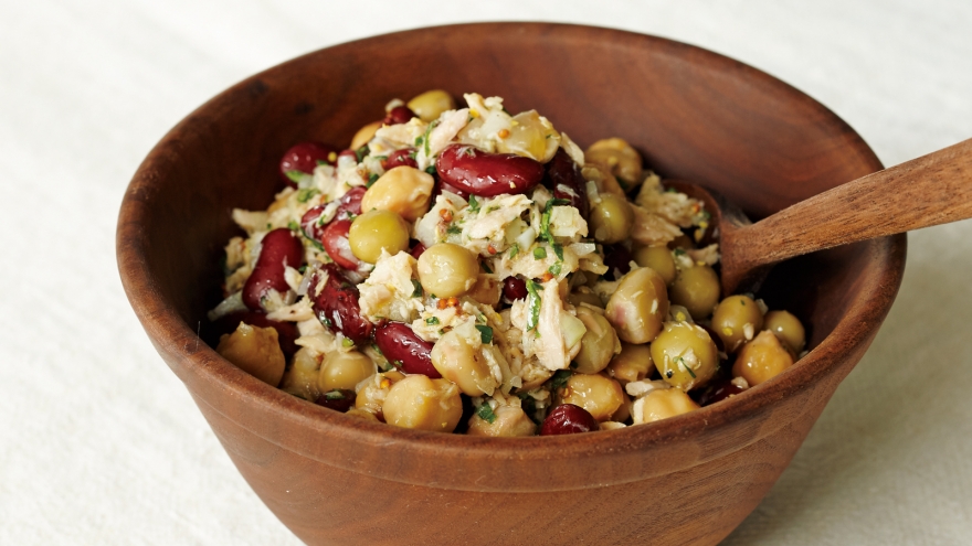 ボウルに1とミックスビーンズ、ツナ(油をきる)を加えて混ぜ、【A】であえて味つけする。