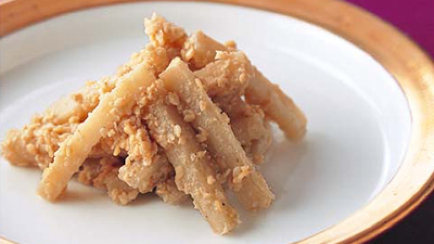 古くから正月料理としてつくられていた、たたきごぼうは、「根気がつく」「家の土台がしっかりする」などから縁起がよいとされています。