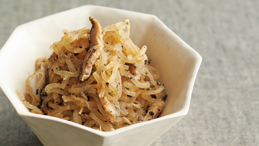 鍋に水としらたきを入れて火にかけ、沸騰してから2~3分間ゆでる。ざるに上げて水けをきる。