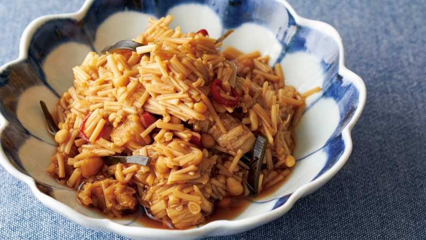 ご存知、えのきの常備菜、なめたけ。レンジで手軽につくれるので、時間がないときにおすすめです。
