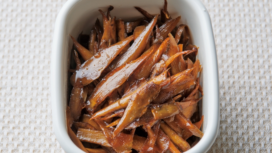 フライパンにオリーブ油を熱し、ごぼうを入れて中火で炒める。全体に油が回ったら【A】を加え、味をからめながら、ごぼうが柔らかくなるまで炒める。