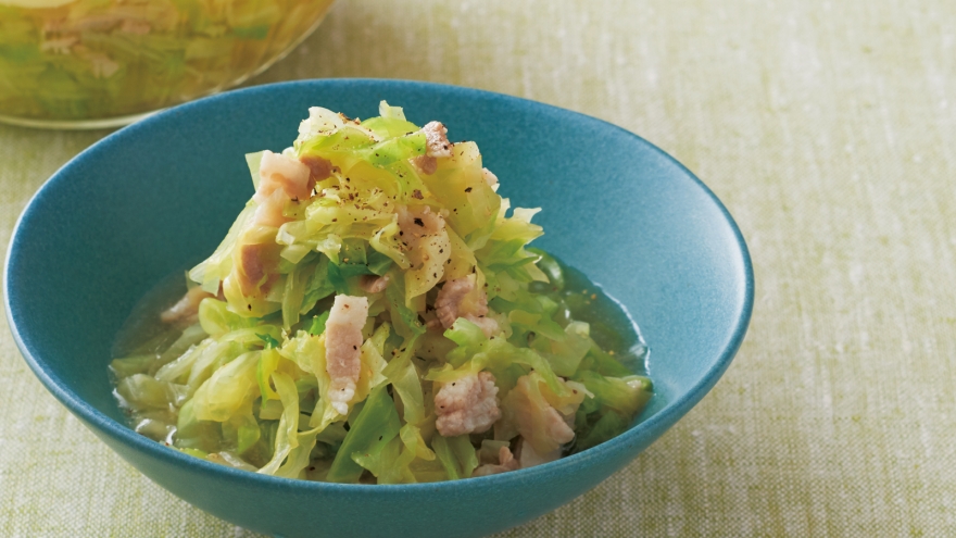 キャベツがしんなりしたら弱めの中火にし、軽く煮る。バットなどにあけ、冷めたら煮汁ごと保存容器に移す。