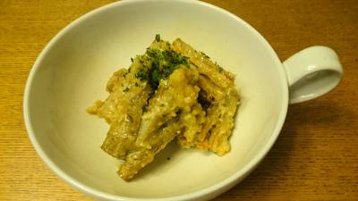 表面の色が似ているごぼうとみそは相性抜群。全体にみそをしっかりからめて。