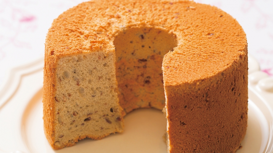 小豆の甘さに、甘酸っぱいいちごの風味がほんのり。口当たりはふんわり、しっとりとしたシフォンケーキです。