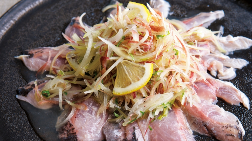 はちみつ入りのレモン汁をかけて刺身を軽く酢じめにすると、くせがやわらぎさっぱりとする。