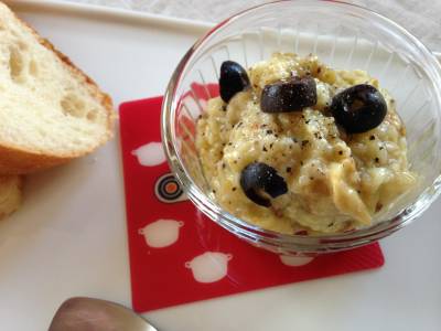 粗熱が取れたらみじん切りにし、にんにく(みじん切り)と混ぜる。塩、こしょうを加えて混ぜ、オリーブ油を加えて混ぜる。数時間から一晩おいて味をなじませるとよい。