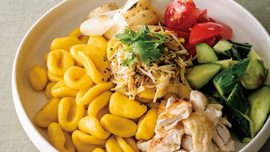 長芋に加え、かぼちゃも、かぜに対する備えになるのだそう。鶏肉や野菜と一緒に混ぜながら召し上がれ。