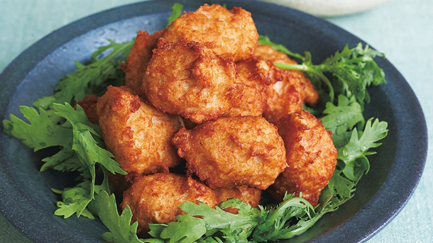 れんこんのすりおろしを加えた肉ダネは、揚げるとフワフワ、モチモチの食感に!手づくりのおろしポン酢しょうゆで食べれば、箸が止まらないおいしさです。