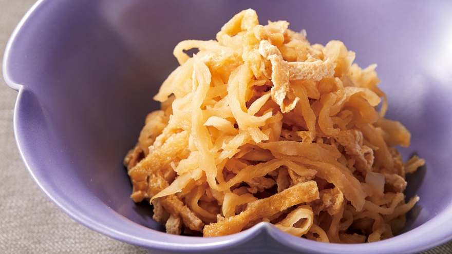 お日さまをたっぷり浴びて干し上がった大根は、昔ながらの健康食材。弱めの火で時々混ぜながら、やわやわと煮上げます。
