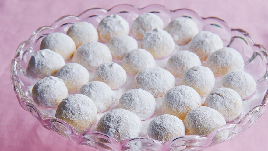 160℃のオーブンで15~20分間焼く。焼き上がったら網にのせて粗熱を取る。完全に冷める前に粉砂糖をたっぷりとまぶす。