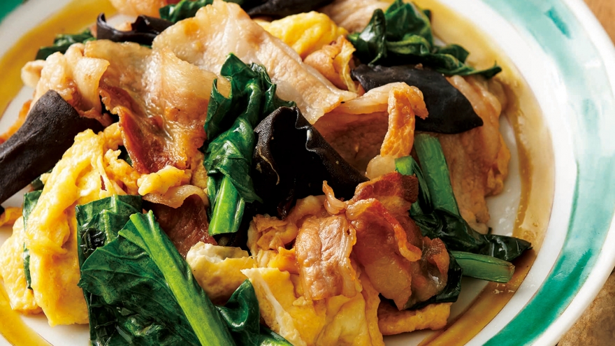 豚肉ときくらげの和風卵炒め