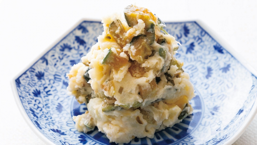 マッシャーなどでつぶし、マヨネーズと粗く刻んだ【きゅうりのちーちゃん】を加え、よく混ぜる。