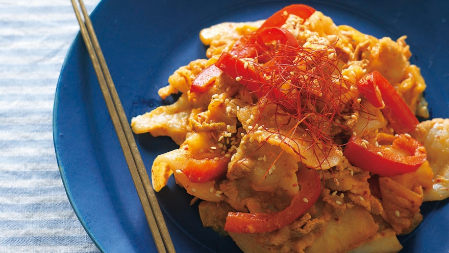 豚キムチにヨーグルト。これが驚くほど合います。マイルドな辛みで、子どもやお年寄りも食べられます。袋を使って材料を合わせるから、洗い物が少ないのもうれしい。