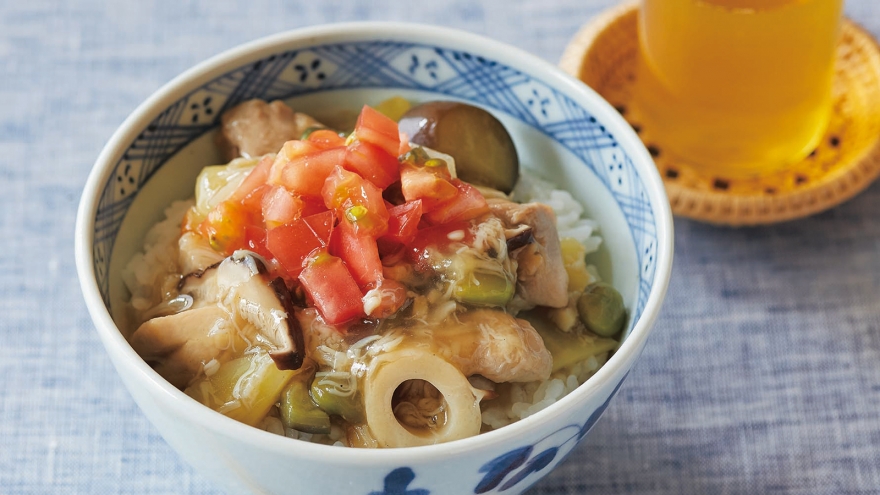新潟の代表的な郷土料理“のっぺ”。鮭(さけ)や根菜類を煮た冬の料理で、里芋から出るとろみが特徴。新たに提案する“夏ののっぺ”は、じゃがいもとかたくり粉でとろみをつけ、アツアツでも、冷やしてもおいしい。