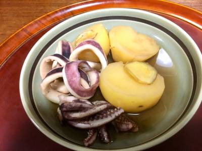 ありそうでなかった組み合わせ。じゃがいもといかは時間差で煮て、ほっこり、ふっくらと仕上げます。枝豆を散らせば、彩りもきれい。