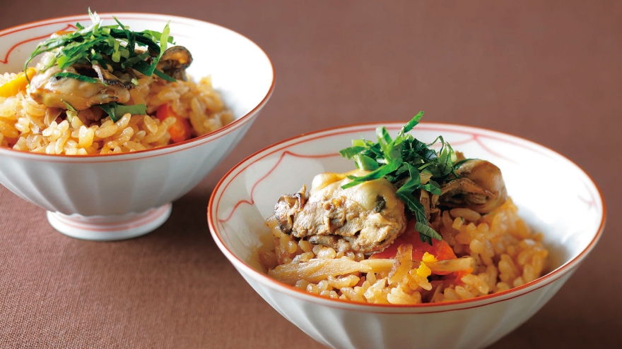 かきと相性のいいごぼうやごま油で磯(いそ)のにおいをやわらげ、食べやすくしました。ご飯にかきのうまみが溶け込み、おかわり必至!