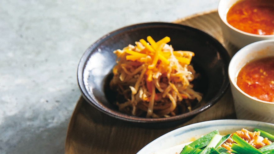 切り干し大根はほぐして水でサッと洗い、軽く水けをきる。油揚げとにんじんは細切りにする。