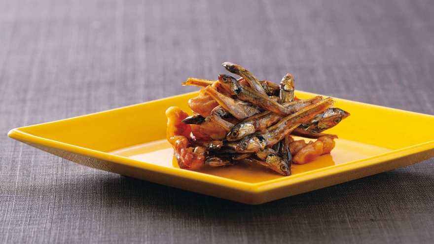 おせちに欠かせない「三つ肴」のうちの一つ、ごまめ。「五万米」と漢字をあてて、豊作を祈念します。古くは田畑の肥料として乾燥いわしがまかれていたことから「田作り」とも。ごまめはいらずに揚げているので、内臓の苦みが出にくく、みつが固まってくっつくのも防げます。