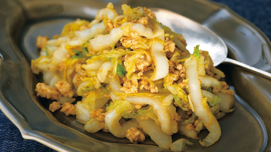 塩もみ白菜なら、炒めても水っぽさなし!淡白な白菜にスパイシーなカレーとバターのコクをプラスすれば、食べごたえのあるおかずに変身します。
