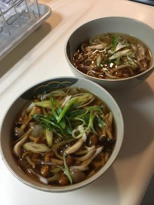 なめこはサッと水で洗う。しめじは根元を切ってほぐす。ねぎは3~4cm長さの斜め薄切りにする。