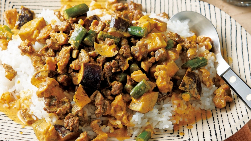 ふたを外して【A】を加え、中火にして5分間ほど煮る。味をみて足りなければ塩少々で調える。器にご飯を盛り、カレーをかける。