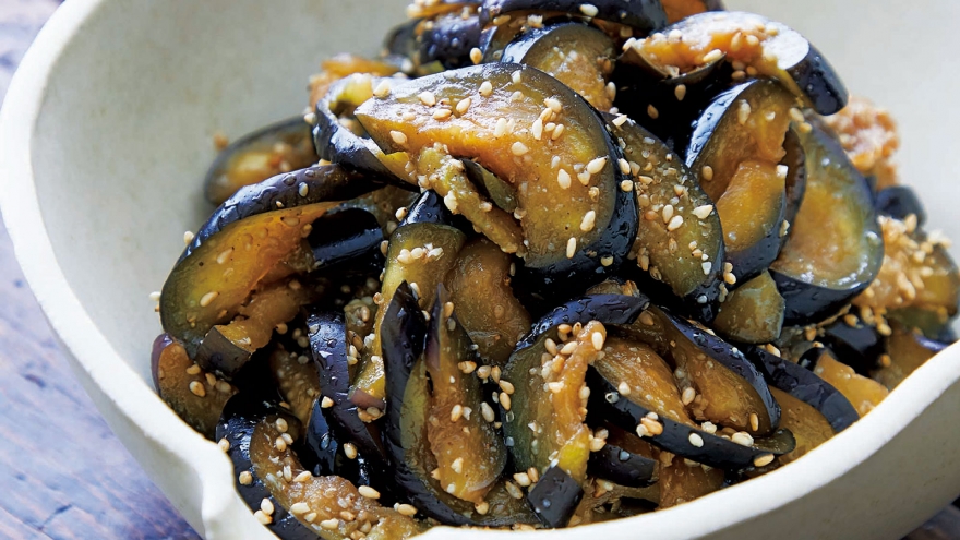 見た目は浅漬けのようですが、一口食べると、にんにくとごまの香りが広がる絶品ナムル。なすの水けをしっかり絞ることがおいしさのポイントです。