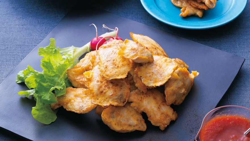 小麦粉と溶き卵の衣で、うまみがあり、ふんわりとした焼き上がりになる。