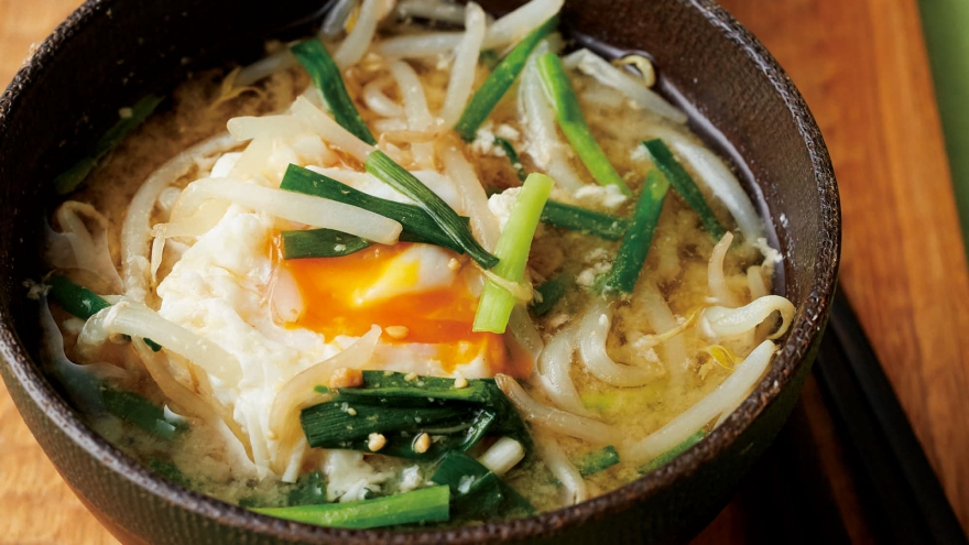 おかず感覚の「食べるみそ汁」です。たっぷりのもやしがクッションになり、鍋に卵がくっつきません。