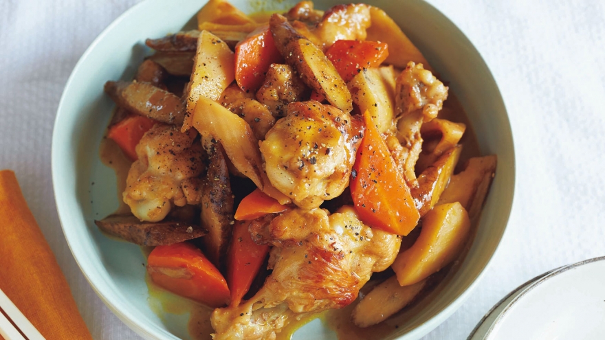 煮立ったらオーブン用の紙などで落としぶたをして、弱火で20分間煮る。汁けが少なくなったら落としぶたを取って強火にし、とろみがついたら全体に汁けをからめる。器に盛り、黒こしょうをふる。
