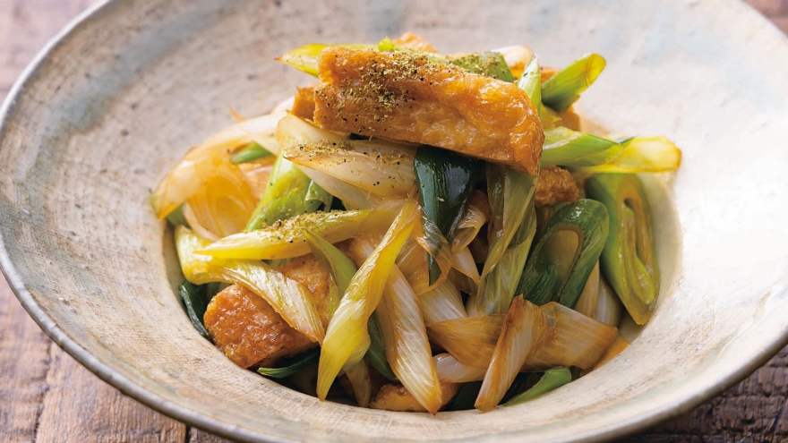 フライパンにごま油を熱し、油揚げを入れて中火で軽く炒め、【A】を加えてからめる。ねぎを加え、ねぎがしんなりとするまで炒める。