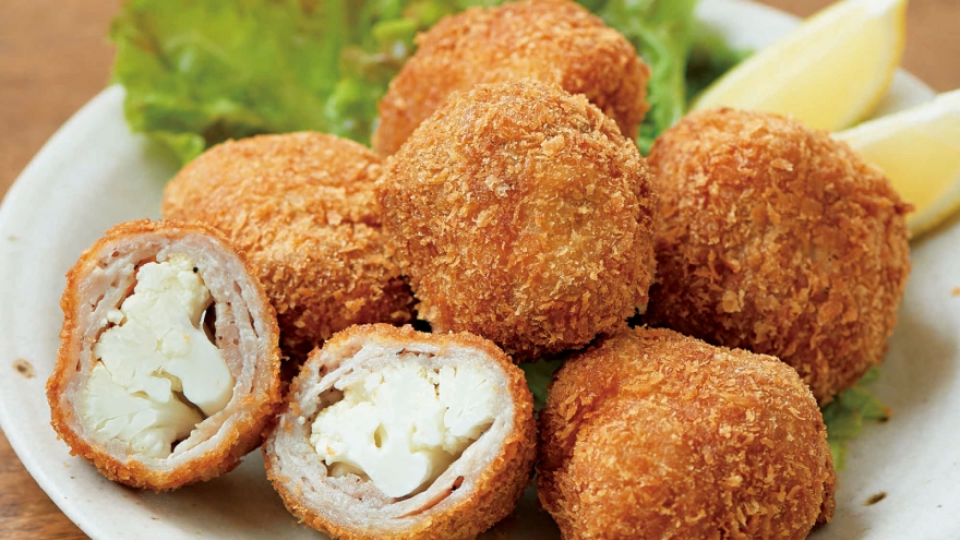 ソースなしでもおいしくいただける肉巻きフライは、表面はサクッ、中のカリフラワーはコリッとした歯ざわりが楽しめます。