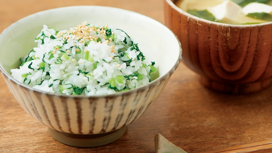 余ったたかぶの葉があれば混ぜご飯に。下ごしらえの塩は、おかずを邪魔しない程度にします。