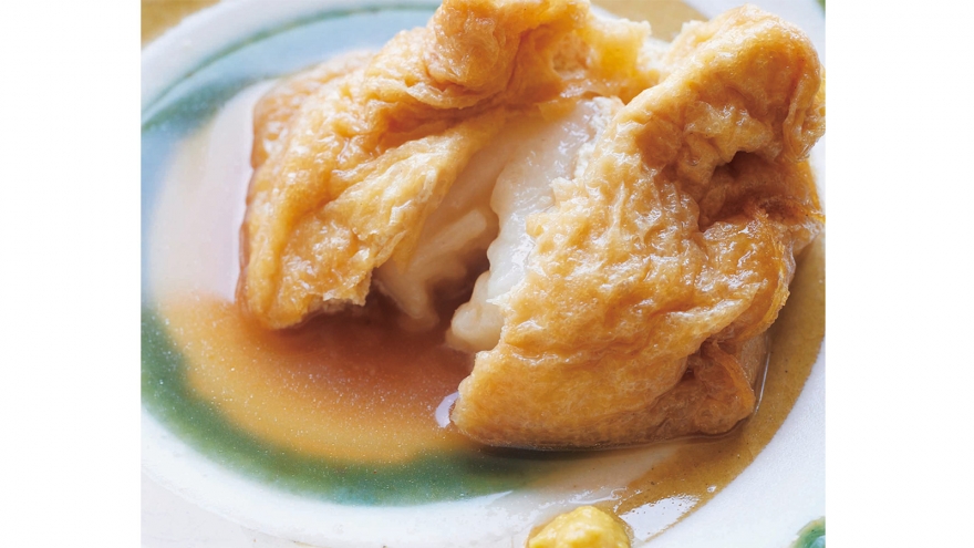 長方形の油揚げを半分に切って袋状に開き、ぬるま湯でサッと洗う。切り餅も半分に切ってそれぞれ油揚げに入れ、ようじでとめる。残った煮汁に加えてふたをし、5~7分間煮る。