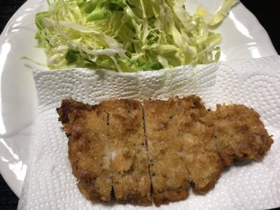 揚げたての豚カツは格別のごちそう。せん切りキャベツと一緒に、アツアツのうちに召し上がれ。