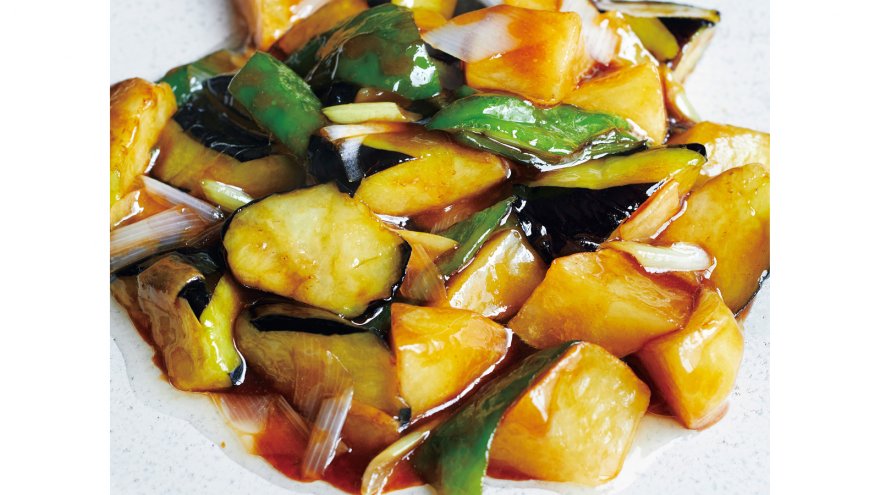 なすとじゃがいも、ピーマンの黒酢炒め