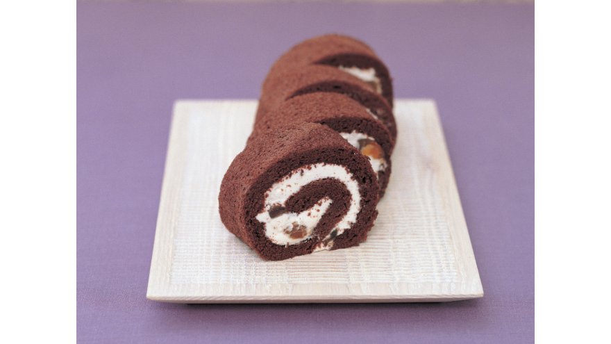 ココアロール生地でマロンクリームをはさんだ、秋らしいロールケーキです。