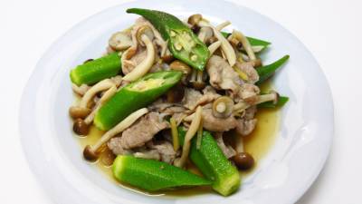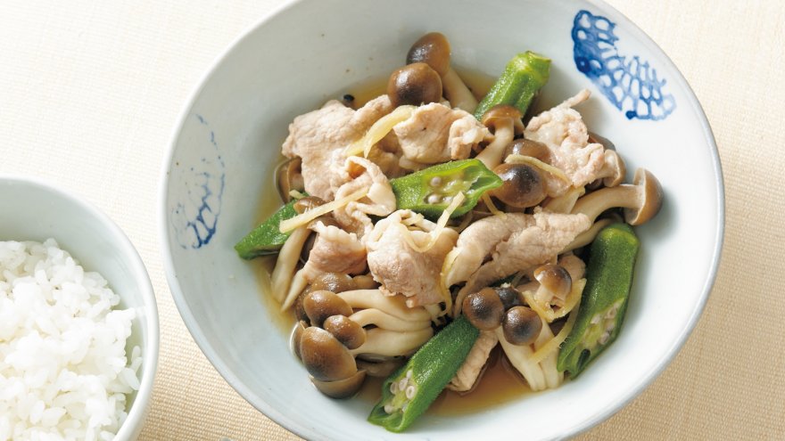 豚肉のうまみがオクラとしめじによくなじみます。手軽なのに食べごたえのある煮物です。