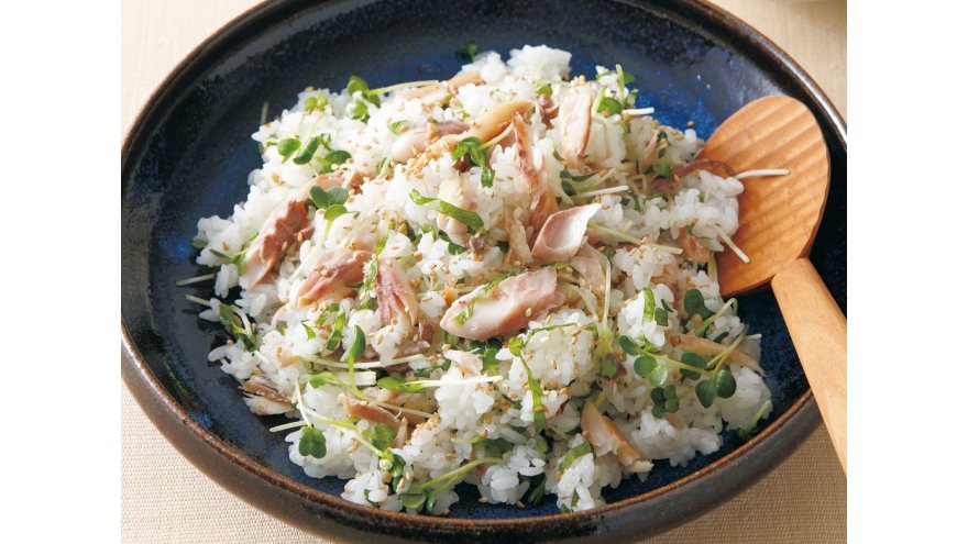 すし飯は、炊きたてのご飯に合わせ酢をかけるのがコツ。干物をほぐして混ぜたら、手軽で上品なおすしが完成。