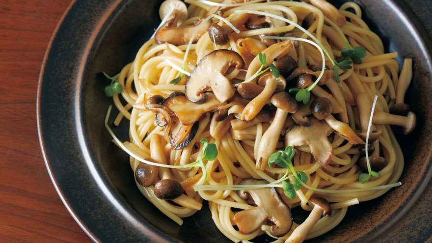炒めることで際立つきのこの香りが主役のパスタ。相性のよいバターとしょうゆで、コクのある和風味です。