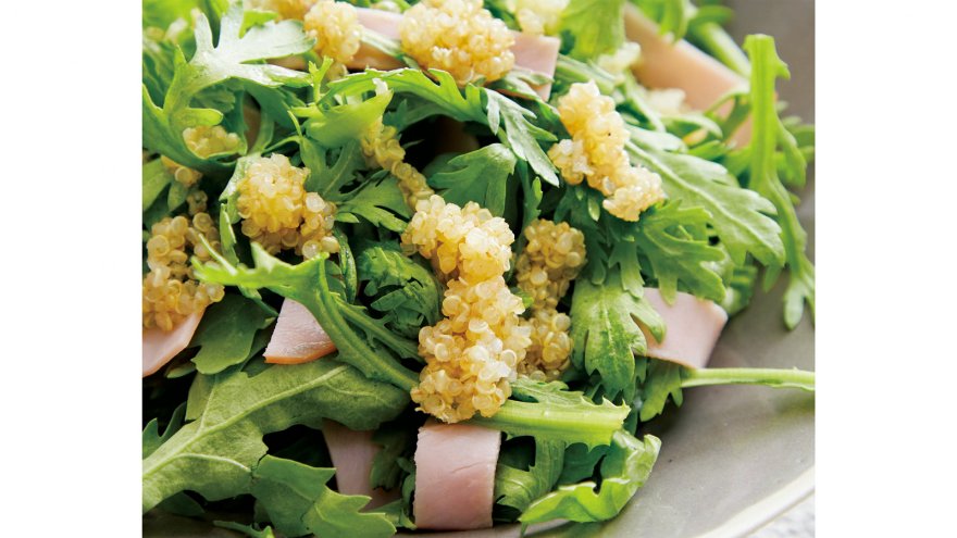 小さめの鍋に水カップ1を沸かして塩を加え、キヌアを入れて10分間ほどゆでる。柔らかくなったら茶こしなどにあけ、水けをきる。【A】を混ぜ合わせ、キヌアを加えてサッと混ぜる。