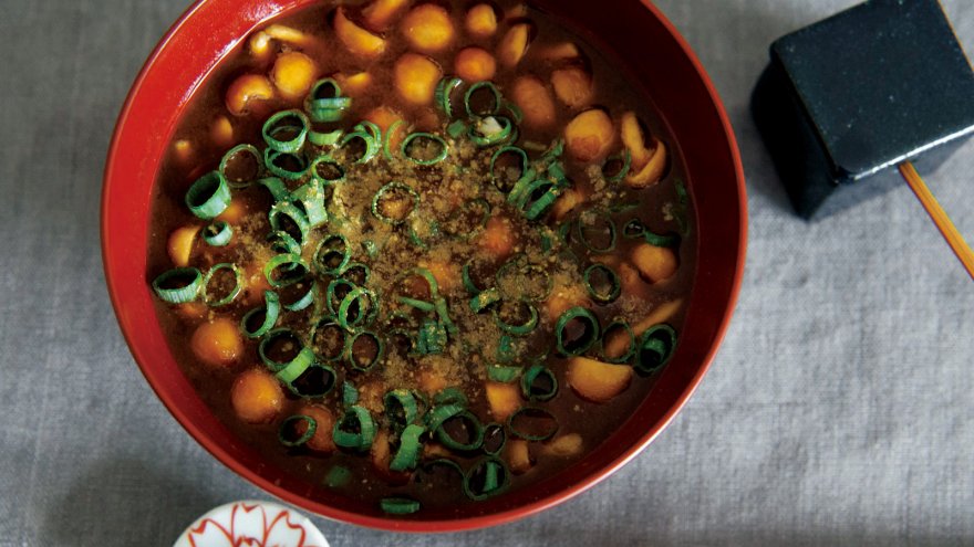 なめこと大根おろしをコクのある赤みそと合わせて。簡単にできてほっとする味です。