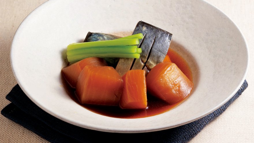 しょうゆベースのつゆを含んだかぶが主役です。さばを合わせてボリュームのある一品に。