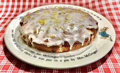 小さな容器に粉砂糖を入れ、レモン汁を加えて混ぜ、トロリとした状態にする。7の中央に一気に落とし、スプーンの背で上面全体にのばす。1で残しておいたレモンの皮を散らす。