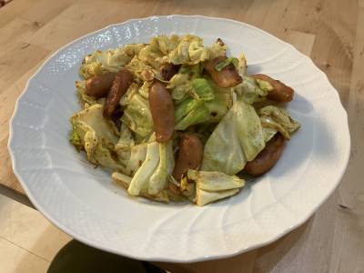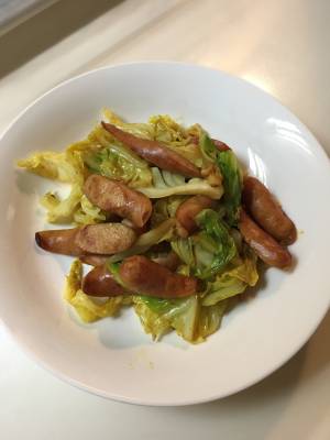 ウインナーとキャベツのカレー炒め