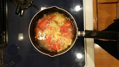 アルミ箔を約30cm長さに広げ、たまねぎ、セロリの茎、パプリカを敷き、たいをのせる。にんにく、トマト、あればレモンをのせ、セロリの葉とこしょう少々をふる。